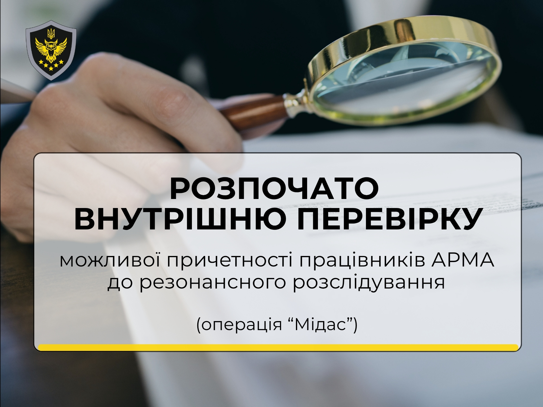 АРМА розпочинає внутрішню перевірку фактів можливої причетності працівників до резонансного розслідування (операція «Мідас»)