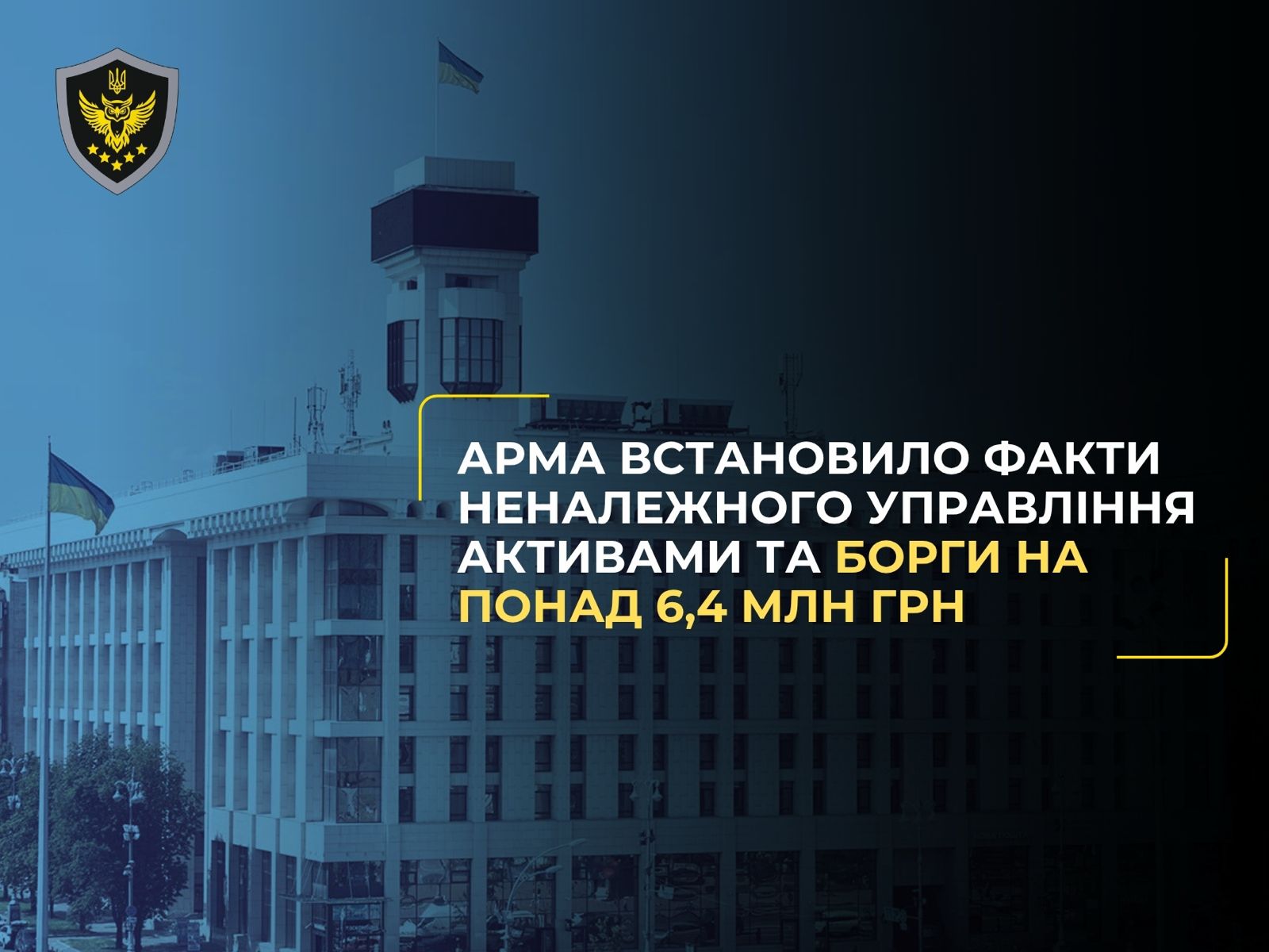 АРМА встановило факти неналежного управління активами та борги на понад 6,4 млн грн