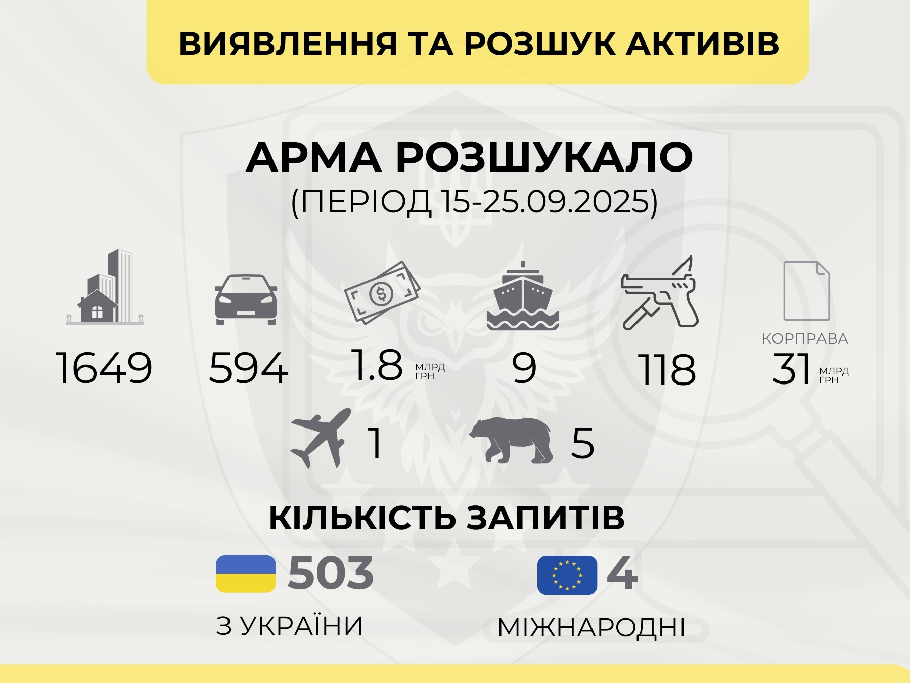До Агентства з розшуку та менеджменту активів (АРМА) від правоохоронних органів України та Міністерства юстиції упродовж останніх двох тижнів надійшло 503 запити щодо виявлення та розшуку активів, а також 4 – від іноземних компетентних органів. Ідеться про необґрунтовані активи та отримані злочинним шляхом, активи підсанкційних осіб.