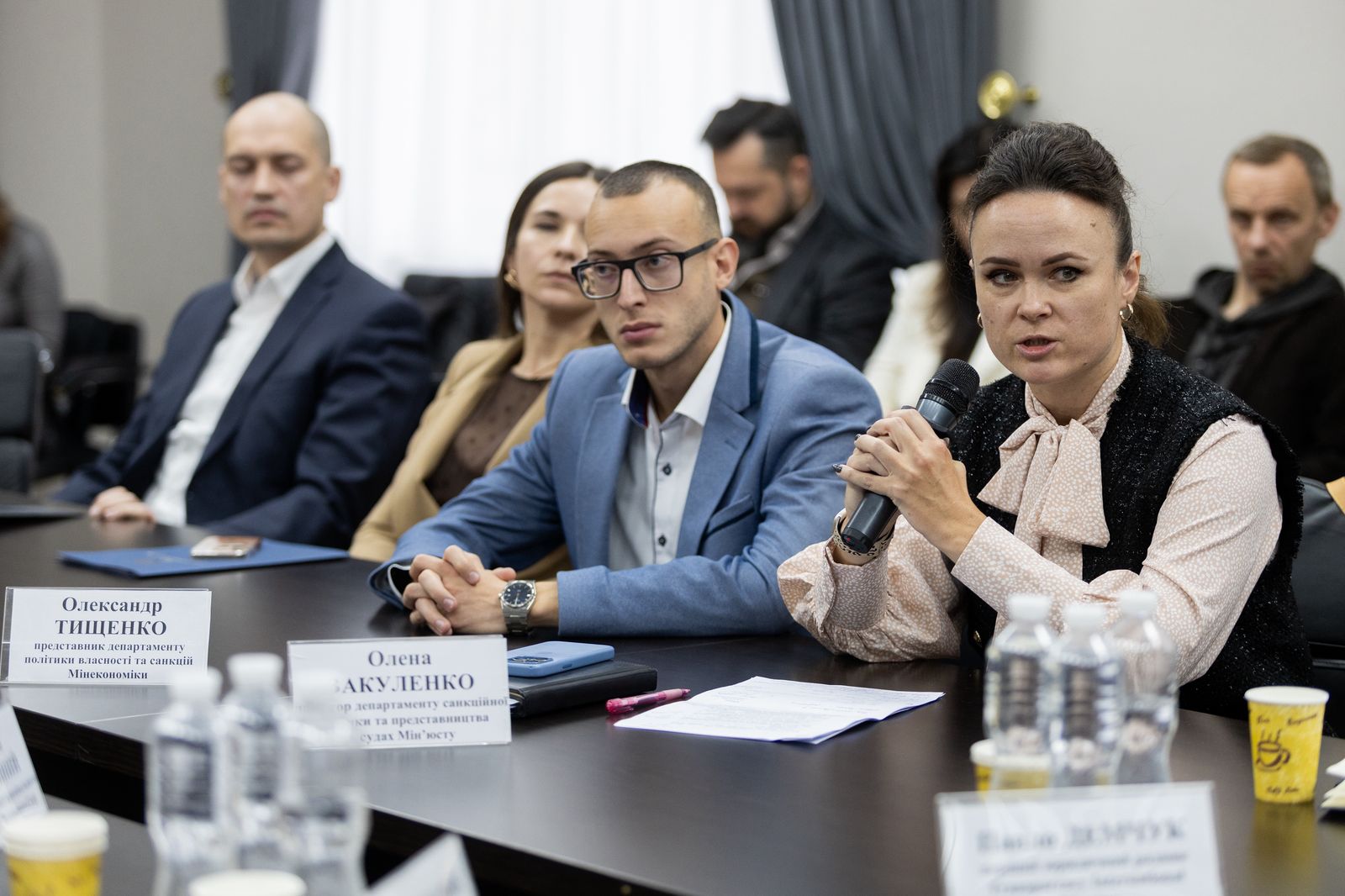 Також в обговоренні актуальної тематики круглого столу взяли участь, директор департаменту санкційної політики та представництва в судах Міністерства юстиції України Олена Вакуленко, керівник відділу детективів Бюро економічної безпеки Тетяна Коновалова, голова наглядової ради АТ «Прозорро Продажі», експерт з питань стратегії ГО EU – LEAP Ілля Михайлов, GR-директорка та операційний директор АТ «Прозорро. Продажі» Оксана Рак та Сергій Бут, заступниця директора ДП «Прозорро» Наталія Шимко, заступник начальника Департаменту 09 Офісу Генерального прокурора Олег Пелепюк, представник департаменту політики власності та санкцій Міністерства економіки України Олександр Тищенко, директор департаменту супроводження санкційного майна та майна на тимчасово окупованих територіях Фонду державного майна України Зоряна Греськів, голова аналітичного центру «Інститут законодавчих ідей» Тетяна Хутор та перший юридичний радник Transparency International Ukraine Павло Демчук.